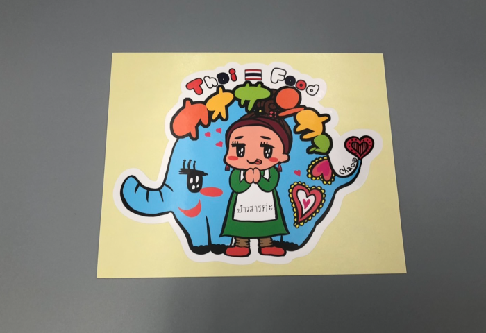 店舗の装飾などに使用するステッカーです。ノベルティとの違いは超小ロットだということ。1枚からでも作成可能です。